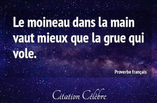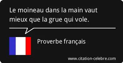 Proverbe  Français Mieux : Le moineau dans la main vaut mieux que la grue...