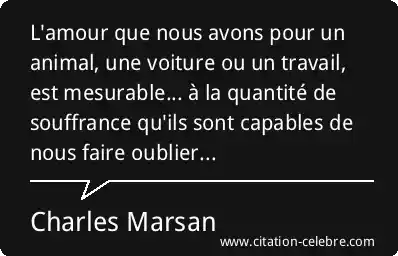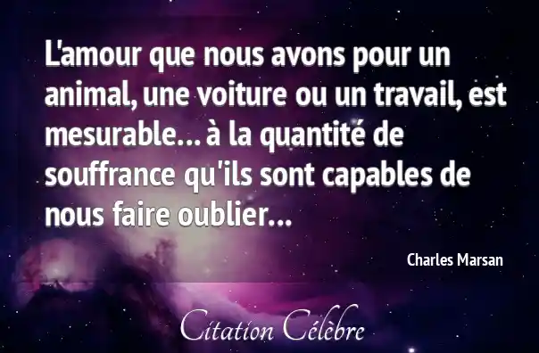 L'amour que nous avons pour un animal, une voiture ou un travail, est mesurable... à la quantité de souffrance qu'ils sont capables de nous faire oublier...