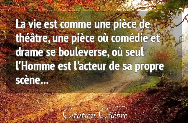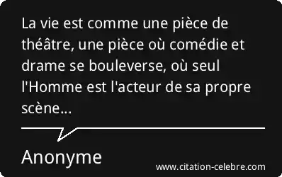 La vie est comme une pièce de théâtre, une pièce où comédie et drame se bouleverse, où seul l'Homme est l'acteur de sa propre scène...