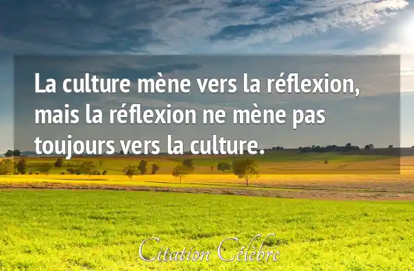 La culture mène vers la réflexion, mais la réflexion ne mène pas toujours vers la culture.