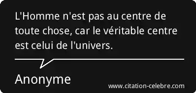 L'Homme n'est pas au centre de toute chose, car le véritable centre est celui de l'univers.