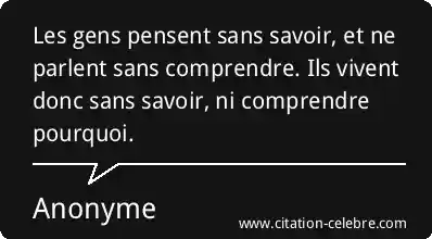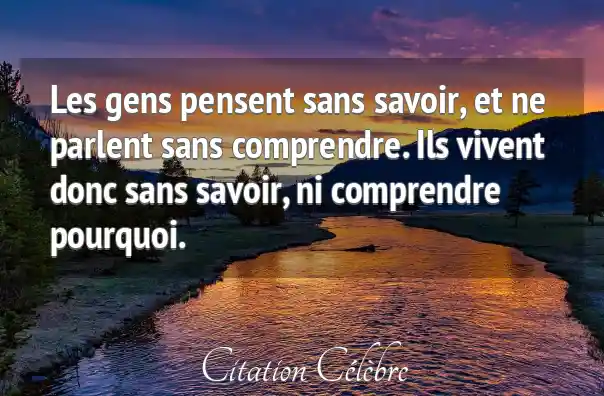 Les gens pensent sans savoir, et ne parlent sans comprendre. Ils vivent donc sans savoir, ni comprendre pourquoi.