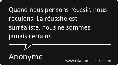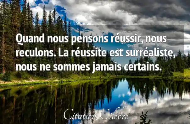 Quand nous pensons réussir, nous reculons. La réussite est surréaliste, nous ne sommes jamais certains.