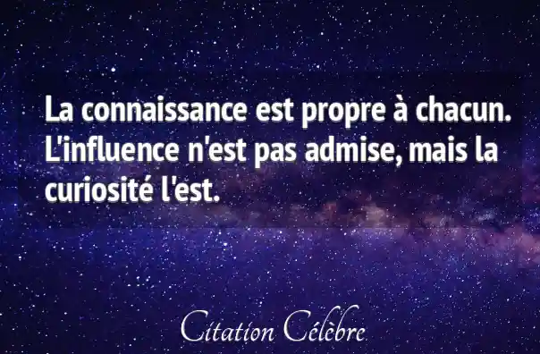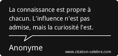 La connaissance est propre à chacun. L'influence n'est pas admise, mais la curiosité l'est.