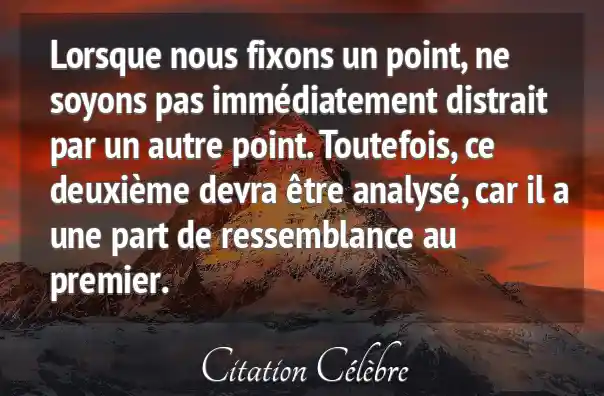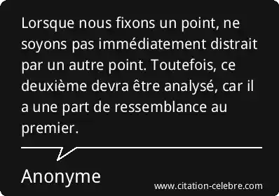 Lorsque nous fixons un point, ne soyons pas immédiatement distrait par un autre point. Toutefois, ce deuxième devra être analysé, car il a une part de ressemblance au premier.