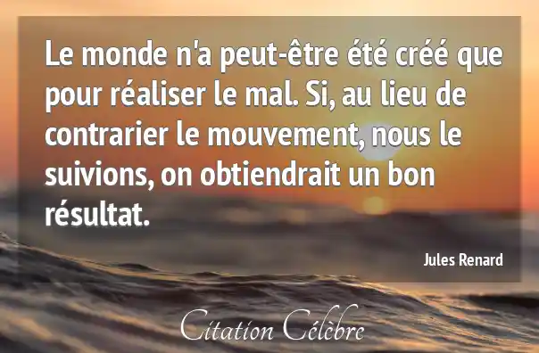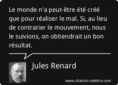 Le monde n'a peut-être été créé que pour réaliser le mal. Si, au lieu de contrarier le mouvement, nous le suivions, on obtiendrait un bon résultat.