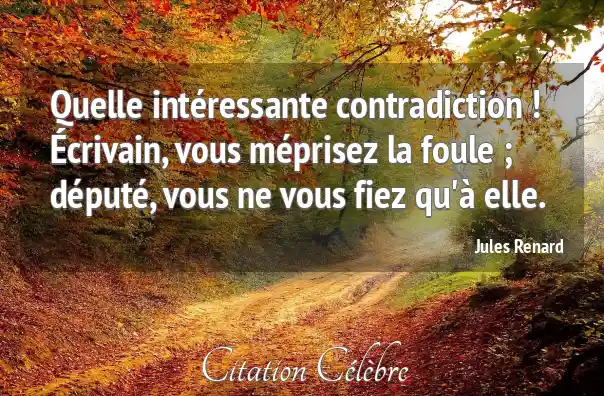 Quelle intéressante contradiction ! Écrivain, vous méprisez la foule ; député, vous ne vous fiez qu'à elle.