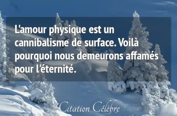 L'amour physique est un cannibalisme de surface. Voilà pourquoi nous demeurons affamés pour l'éternité.