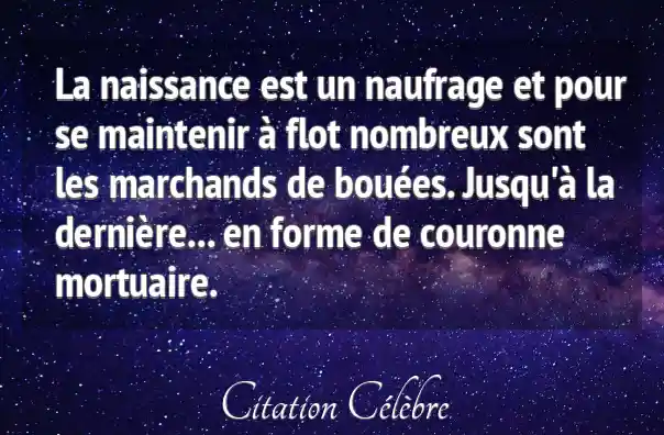 La naissance est un naufrage et pour se maintenir à flot nombreux sont les marchands de bouées. Jusqu'à la dernière... en forme de couronne mortuaire.