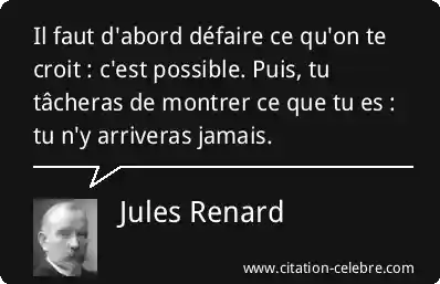 Il faut d'abord défaire ce qu'on te croit : c'est possible. Puis, tu tâcheras de montrer ce que tu es : tu n'y arriveras jamais.