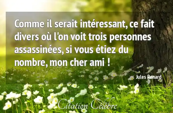 Comme il serait intéressant, ce fait divers où l'on voit trois personnes assassinées, si vous étiez du nombre, mon cher ami !