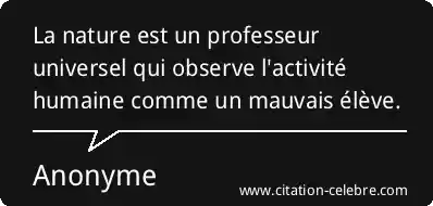 La nature est un professeur universel qui observe l'activité humaine comme un mauvais élève.