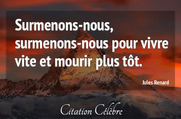 Surmenons-nous, surmenons-nous pour vivre vite et mourir plus tôt.