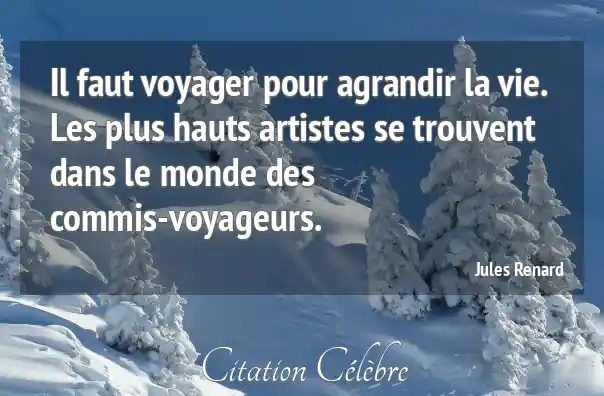 Il faut voyager pour agrandir la vie. Les plus hauts artistes se trouvent dans le monde des commis-voyageurs.