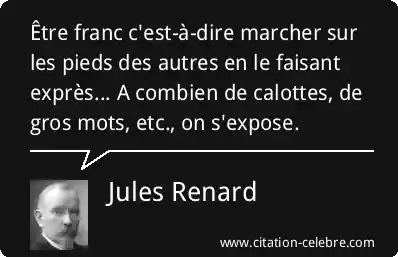 Être franc c'est-à-dire marcher sur les pieds des autres en le faisant exprès... A combien de calottes, de gros mots, etc., on s'expose.