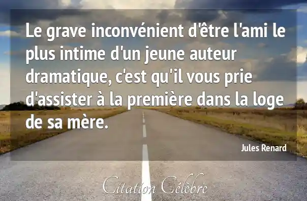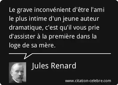 Le grave inconvénient d'être l'ami le plus intime d'un jeune auteur dramatique, c'est qu'il vous prie d'assister à la première dans la loge de sa mère.