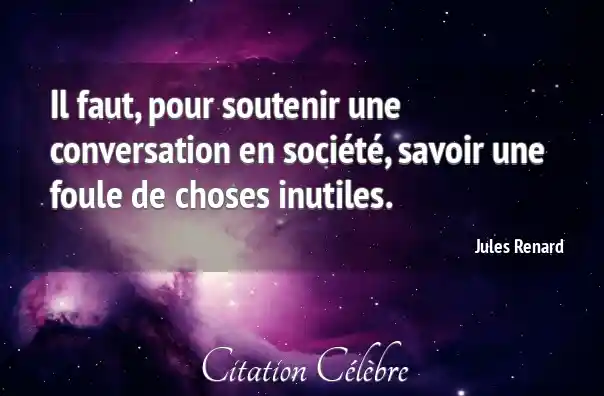 Il faut, pour soutenir une conversation en société, savoir une foule de choses inutiles.