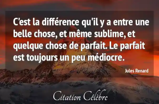 C'est la différence qu'il y a entre une belle chose, et même sublime, et quelque chose de parfait. Le parfait est toujours un peu médiocre.