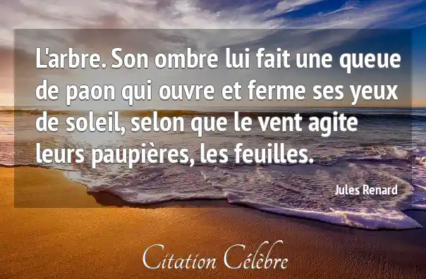 L'arbre. Son ombre lui fait une queue de paon qui ouvre et ferme ses yeux de soleil, selon que le vent agite leurs paupières, les feuilles.