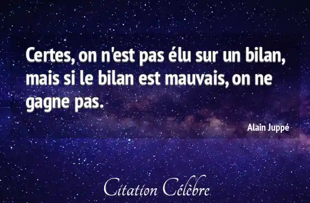 Certes, on n'est pas élu sur un bilan, mais si le bilan est mauvais, on ne gagne pas.