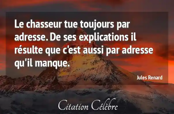Citation Jules Renard manque : Le chasseur tue toujours par adresse. De ses explications il...