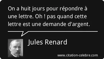 On a huit jours pour répondre à une lettre. Oh ! pas quand cette lettre est une demande d'argent.