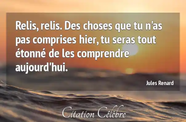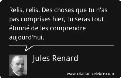 Relis, relis. Des choses que tu n'as pas comprises hier, tu seras tout étonné de les comprendre aujourd'hui.