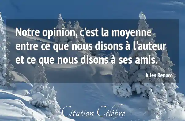 Notre opinion, c'est la moyenne entre ce que nous disons à l'auteur et ce que nous disons à ses amis.