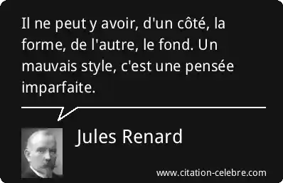 Il ne peut y avoir, d'un côté, la forme, de l'autre, le fond. Un mauvais style, c'est une pensée imparfaite.