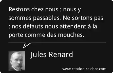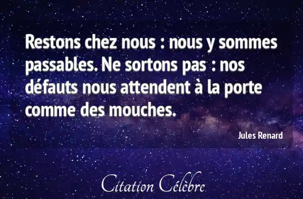 Restons chez nous : nous y sommes passables. Ne sortons pas : nos défauts nous attendent à la porte comme des mouches.
