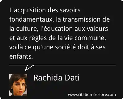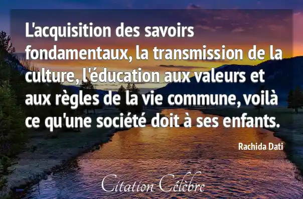 L'acquisition des savoirs fondamentaux, la transmission de la culture, l'éducation aux valeurs et aux règles de la vie commune, voilà ce qu'une société doit à ses enfants.
