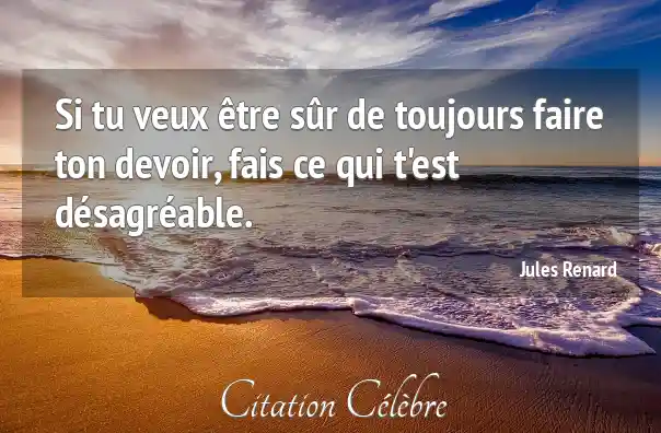Citation Jules Renard devoir : Si tu veux être sûr de toujours faire ton devoir,...