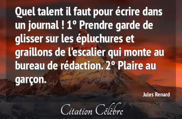 Quel talent il faut pour écrire dans un journal ! 1° Prendre garde de glisser sur les épluchures et graillons de l'escalier qui monte au bureau de rédaction. 2° Plaire au garçon.
