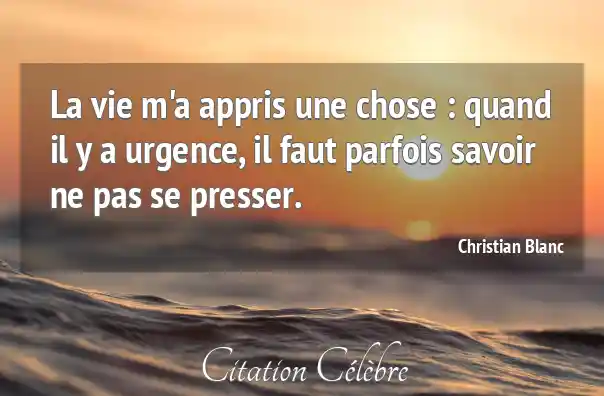 La vie m'a appris une chose : quand il y a urgence, il faut parfois savoir ne pas se presser.