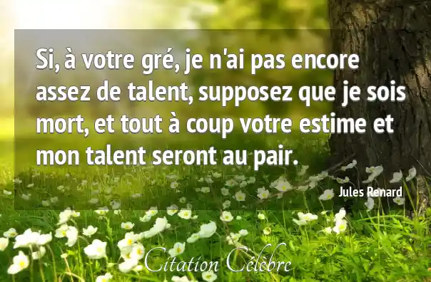 Si, à votre gré, je n'ai pas encore assez de talent, supposez que je sois mort, et tout à coup votre estime et mon talent seront au pair.