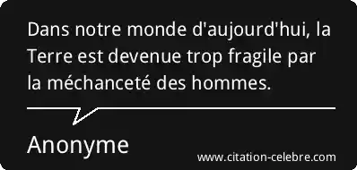 Dans notre monde d'aujourd'hui, la Terre est devenue trop fragile par la méchanceté des hommes.