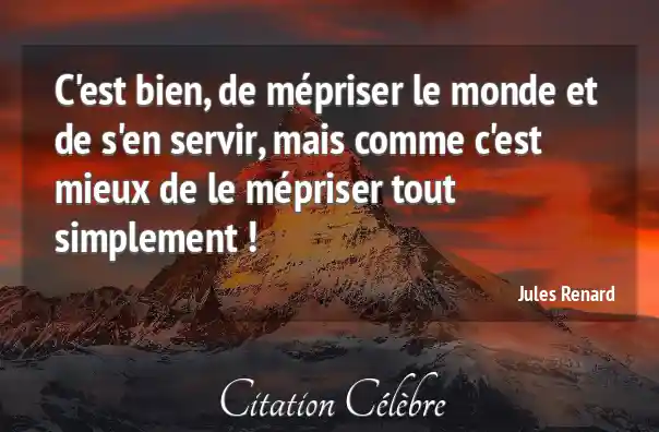 C'est bien, de mépriser le monde et de s'en servir, mais comme c'est mieux de le mépriser tout simplement !