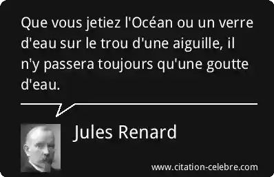 Que vous jetiez l'Océan ou un verre d'eau sur le trou d'une aiguille, il n'y passera toujours qu'une goutte d'eau.