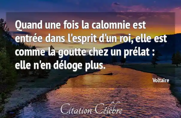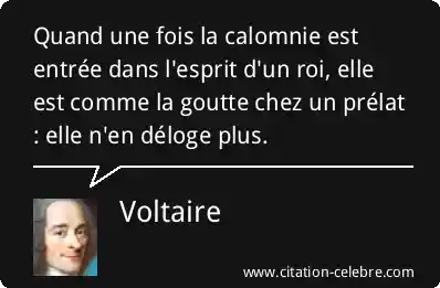 Quand une fois la calomnie est entrée dans l'esprit d'un roi, elle est comme la goutte chez un prélat : elle n'en déloge plus.
