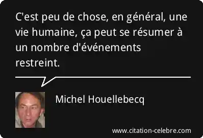 C'est peu de chose, en général, une vie humaine, ça peut se résumer à un nombre d'événements restreint.