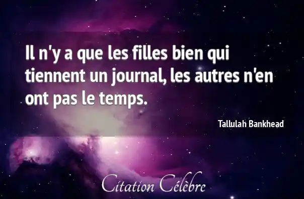 Il n'y a que les filles bien qui tiennent un journal, les autres n'en ont pas le temps.