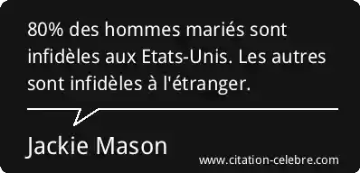 80% des hommes mariés sont infidèles aux Etats-Unis. Les autres sont infidèles à l'étranger.