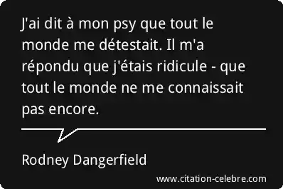 J'ai dit à mon psy que tout le monde me détestait. Il m'a répondu que j'étais ridicule - que tout le monde ne me connaissait pas encore.
