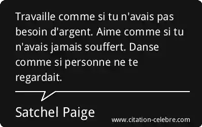 Travaille comme si tu n'avais pas besoin d'argent. Aime comme si tu n'avais jamais souffert. Danse comme si personne ne te regardait.