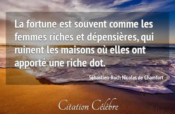 La fortune est souvent comme les femmes riches et dépensières, qui ruinent les maisons où elles ont apporté une riche dot.