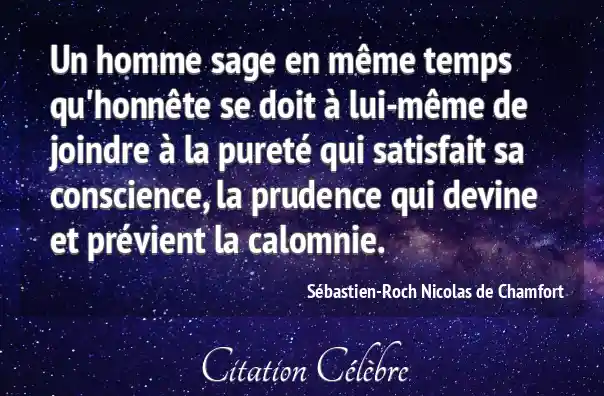 Un homme sage en même temps qu'honnête se doit à lui-même de joindre à la pureté qui satisfait sa conscience, la prudence qui devine et prévient la calomnie.