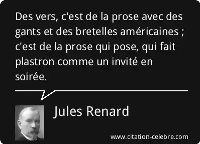 Des vers, c'est de la prose avec des gants et des bretelles américaines ; c'est de la prose qui pose, qui fait plastron comme un invité en soirée.