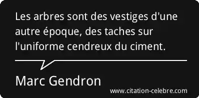 Les arbres sont des vestiges d'une autre époque, des taches sur l'uniforme cendreux du ciment.
