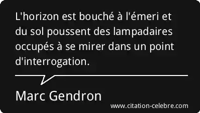 L'horizon est bouché à l'émeri et du sol poussent des lampadaires occupés à se mirer dans un point d'interrogation.