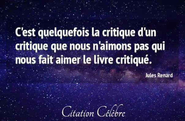 C'est quelquefois la critique d'un critique que nous n'aimons pas qui nous fait aimer le livre critiqué.